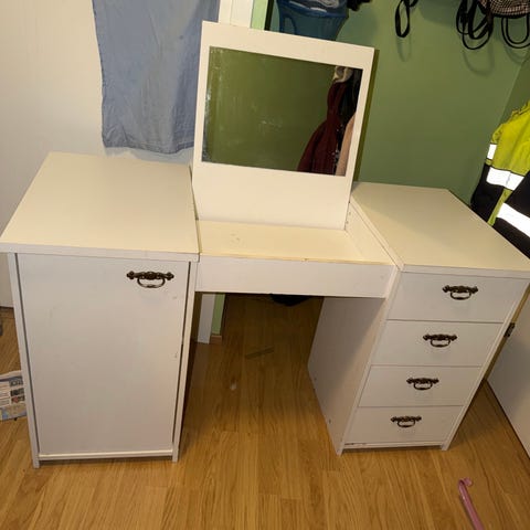 Hieman maalia vaativa kampauspöytä.