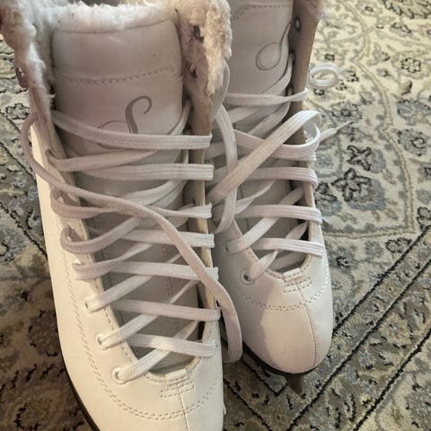 Valkoiset naisten luistimet kokon40. Ostettu käytettynä, mutta olikin itselleni liian isot. Ruostetta jonkin verran terissä, muuten ulkopuolelta oikein hyvässä kunnossa.