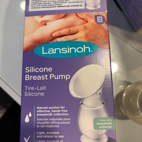 Annetaan Lansinoh-merkin alipaineella toimiva maidonkerääjä. Pumppu on desinfioitu ja kuin uusi (käytetty vain kerran).