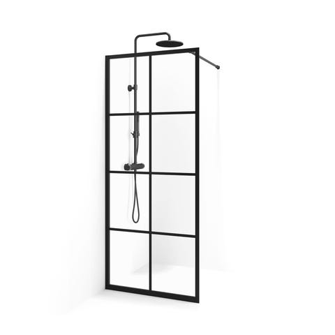 Höga Kusten -suihkuseinä on 200 cm korkea ja valmistettu 6 mm kirkkaasta lasista, jota kehystävät mustat alumiiniprofiilit. Mukana tuleva tukitanko voidaan asentaa joko poikittain tai pystyyn, ja se on helppo kiinnittää seinään tai suihkuseinään. Toisella puolella on pintaan asennettu profiili, kun taas toinen puoli on täysin sileää lasia, mikä tekee ilmeestä kevyen ja helpottaa puhtaanapitoa. Selkeälinjainen, suorakulmainen suihkuseinä sopii moderniin kylpyhuoneeseen.