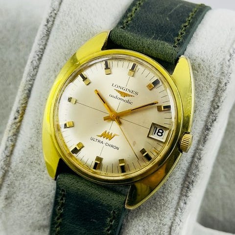 Longines ch30 flyback 50-luvulta, käytetty ja hyvässä kunnossa kuten kuvasta näkyy. Kotelon päällystetty kultaan, koko 37,5 mm. Nahkaranneke Ardiglione, Longines, pituus 18 cm. Kello toimii täydellisesti.