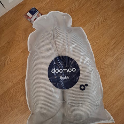 Doomoo Baby Pillow vauvan tyyny valkoisella värillä. Tyyny on suunniteltu vauvoille ja tarjoaa tukea ja mukavuutta nukkumiseen.