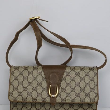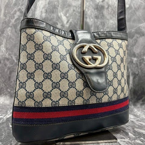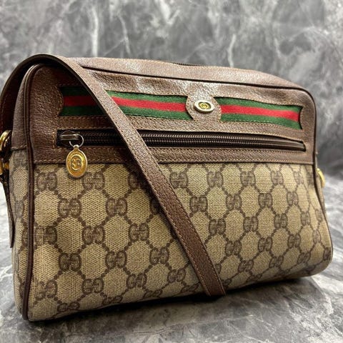 Nahka, kangas, logo, vintage, vanha Gucci, kultaiset metalliosat.