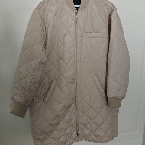 Käyttämätön kevyt toppatakki. Tilattu netistä, mutta olikin liian pieni. Koko M. Kai-kai n.48cm. Takin pituus n. 79cm. Edessä taskut. Väri saven ruskeaharmaa.