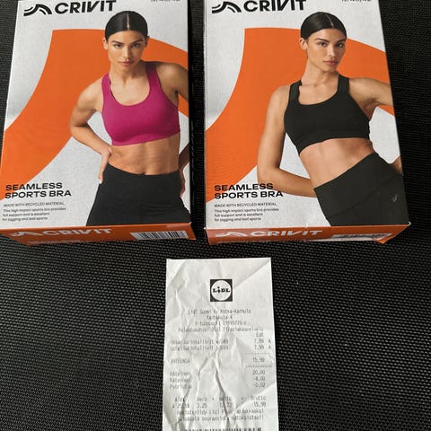 Danskin-merkkiset urheiluliivit, päänyli puettavat. Irrotettavat toppaukset.
