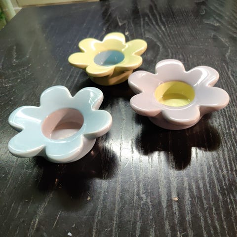 Flying Tiger koristeelliset kukat ja maljakko, korkeus n. 23 cm ja leveys n. 14 cm. Maljakossa joku jälki, en tiedä mikä, oli jo kun tilasin tuotteen.