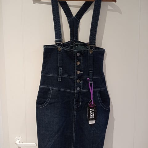 Rennon mallinen farkkumekko. Laput leikattu, mutta materiaali on ohuehkoa ja nätisti laskeutuvaa. 3/4 hihat.