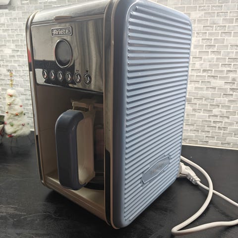 Espressokeitin. Kahvassa pieni halkeama. Huomaa kun lähemmin katsoo.