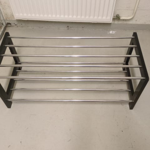 Hakusanat: säilytys, valkoinen, kenkähylly, kenkäteline, metalliset tangot