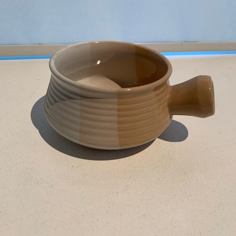 Tilavuus 5dl, korkeus 10 ja halkaisia 11. Ihanteellinen sipulikeiton tarjoilussa. Eivät ole olleet käytössä. Kaikki 25:- kappalehinta 6:-
