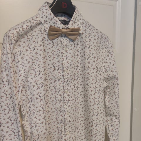 Koko slim fit M, sopii ihanasti vaikka teinille juhlapaidaksi ja on hyvännäköinen myös mustan puvun alla. Paitaan sopiva mirri on myynnissä erikseen. Myynnissä myös erikseen vastaava valkoinen paita. 100% puuvillaa. Uutena maksanut 40e.