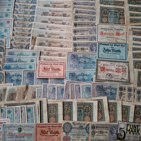 120 seteliä Saksan inflaatioon liittyen, mukava sekoitus — katso kuvat.