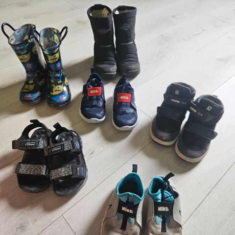 Sinikeltaiset eläinkuvioiset, arviolta kokoa 27. Päkiöiden reunassa kulumaa, mutta kelvannee vielä metsäretkille, mökille, mummolaan ym. varasaappaiksi. Tarjoa jotakin.
