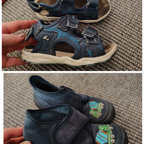 Sandaalit kimalletarroilla, Ryhmä hau kuvioiset. Toisen päkiän sisäreunassa kauneusvirheenä rispaantumaa, ei kuitenkaan haittaa käyttöä. Nahkaiset musta-ruskeat kesänilkkurit. Pojallekin sopivat. (Oikeanpuoleiset parit jo myyty)