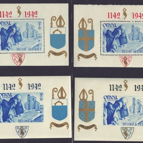 Belgia 1942 - Pienet Orval-palikat numeroitu. - OBP : Blokken 18/21