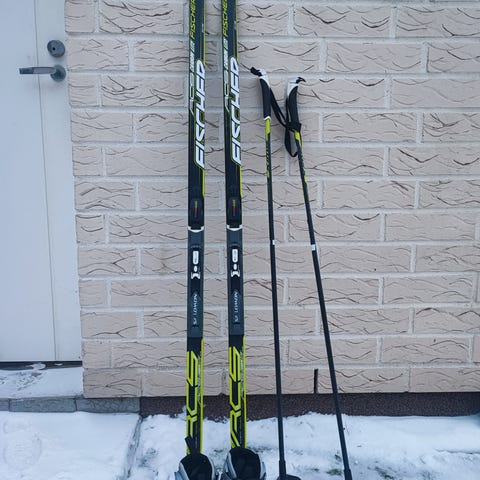 140cm sukset joissa on pitoalueella hammastus, 107cm sauvat ja monot kokoa 37 pohjallisen mitta 23.5cm. Monot ovat olleet vähällä käytöllä.