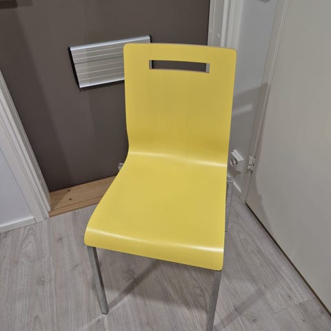 Vastaavanlaisia tuoleja netissä myynnissä yli 150€ hintaan. Hinta tälle 50€, mutta jos ostat toisenkin tuolin saat molemmat hintaan 80€. Tuolit ovat pinottavia.