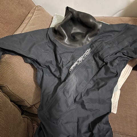 Erittäin hyvässä kunnossa oleva erityisesti melontaa, mutta myös muuhun vesillä liikkumiseen soveltuva kuivapuku. Aina käytetty melontakenkiä, joten jalkaosat kulumattomat. Lateksiset käsimansetit täysin ehjät samoin neopreeni kaulamansetti.