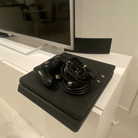 Hyväkuntoinen ja täysin toimiva ps4 slim 500gb. Mukaan kolme ohjainta, virtajohto, laturi ohjaimille, NHL 18, NHL 22 ja FIFA 23. Yhdessä ohjaimessa pientä stick driftiä, kaksi toimii moitteetta.