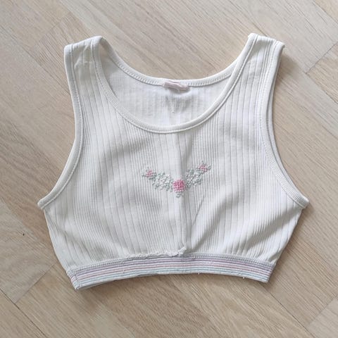Hyväkuntoinen lasten valkoinen lyhyt aluspaita. Koko: 120.