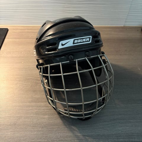 Bauer jääkiekko kypärä, väri valkoinen. Kypärä soveltuu jääkiekkoon ja tarjoaa suojaa pääalueelle. Varustettu metallisella kasvovisiirillä ja säädettävillä remmeillä istuvuuden varmistamiseksi.