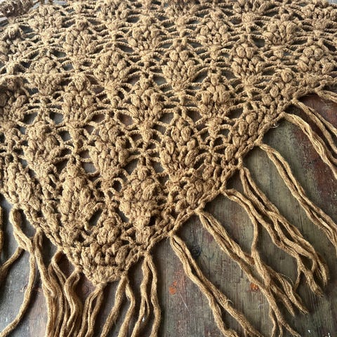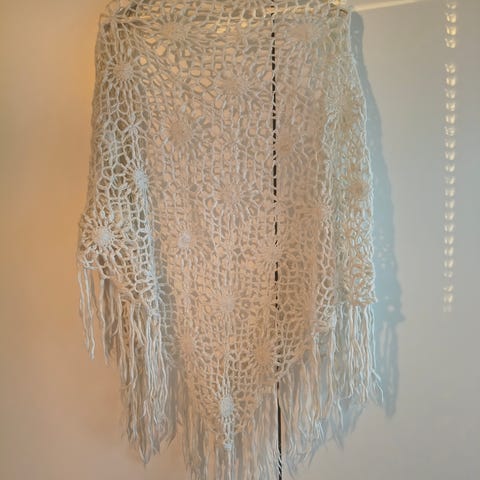 Lämmin kolmiohuivi. Villa. Koristeltu helmillä. Huivin koko näkyy kuvassa. Se voidaan kiinnittää mihin tahansa pään kokoon, 53-60cm