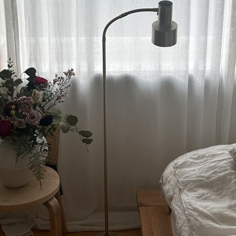 Myynnissä 70-luvun Nafa lattiavalaisin. Hopeanvärinen, kuupan alaosasta hopeointi hieman lähtenyt. Jalassa hieman kolhua. Yleisilme kuitenkin siisti. Huom. Tämä on se pienempi ja lyhyempi malli. Korkeus n. 118cm. Valaisimessa on uudet sähköt sähkömiehen toimesta.