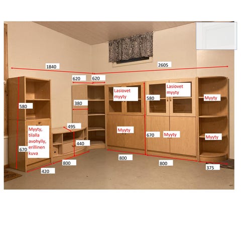 Pyökkiä, 3 x 80 cm ja 2 x 40cm leveitä osioita, yhteensä 18 kpl. Kokoa omaan järjestykseen. Uutena maksanut 25000 mk