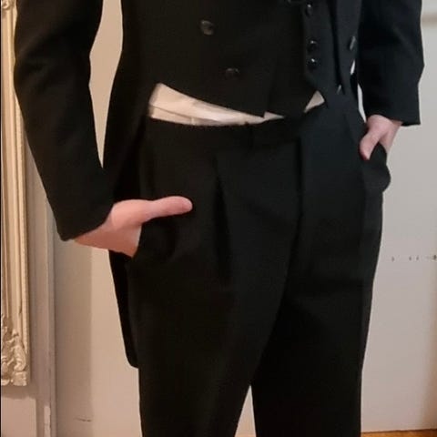 Hyväkuntoinen vähän käytetty smokki P.Järveläinen -40 luvulta, takki, housut, liivi, paita ilman nappeja. Sisätiloissa säilytetty. Koko S mitat: housunvyötärö 82 cm sivupituus 104 takki selänleveys 39cm ja hihan pituus 61 cm