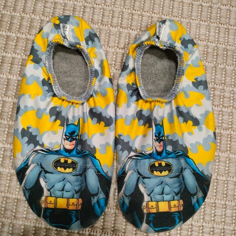 Slipstop sisätossut, L koko eli 30-32, pohjan mustan osan mitta n 19,7 cm. Dinosauruskuvio, siististi parsittu yksi minireikä edestä ja sisäsivuilta kohdat, eivätkä jää näkyviin jalassa ollessa, kts kuvat, yleisilme siisti.