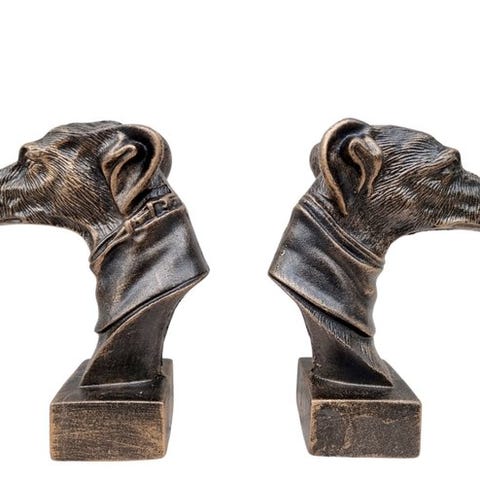 Pari kauniita valurautaisia patsaita, jotka esittävät windhondaa marmorialustalla. Tämä veistos on mitoiltaan noin: