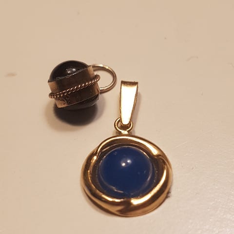 3 kpl 14 crt kultariipuksia, 585, paino 0,6gr(parturi), 0,9gr(sydän) ja 1gr(sydän) ja lahjakotelo. Leimat on.