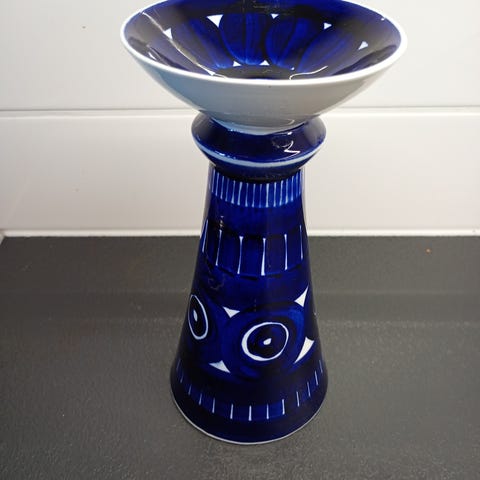 Ulla Procopén suunnittelema ja käsinmaalaama Valencia-kynttilänjalka hienolla koboltinsinisella sävyllä.
