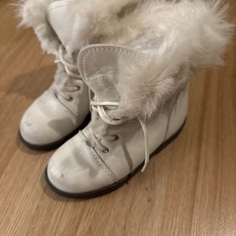 Hyvässä kunnossa. Vasemman kengän sisäsyrjässä pieni repeämä (kuva), näppärä varmasti ompelee 😊 ei ole haitannut käyttöä.
