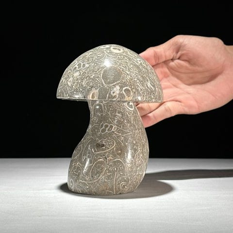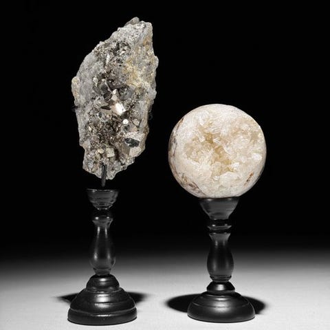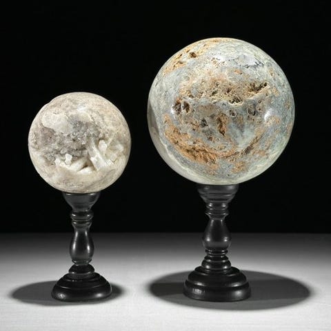 Upea turritella-munamainen ja kvartsikristallipallo erikoisvalmisteisella jalustalla.