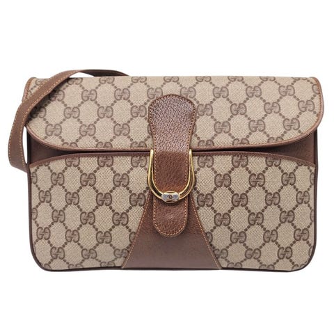 Ei minimihintaa Gucci vanha Gucci GG Plus olkalaukku, Pochette, crossbody, ei sivupaneelia, PVC, nahka, beige, ruskea