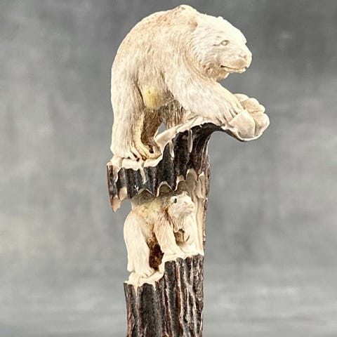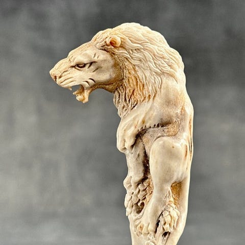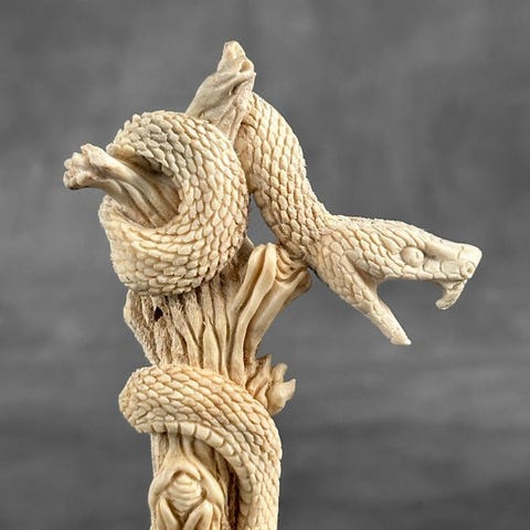 Kaiverrus, Stunning Dragon Head carving from a deer antler on a custom stand -