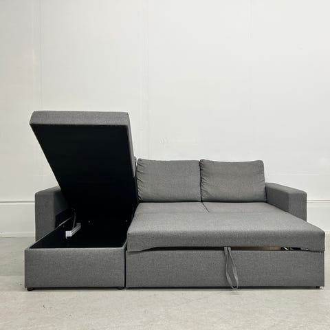 - Sohvan saa levitettyä vuoteeksi ja divaanin alta löytyy runsaasti säilytystilaa.