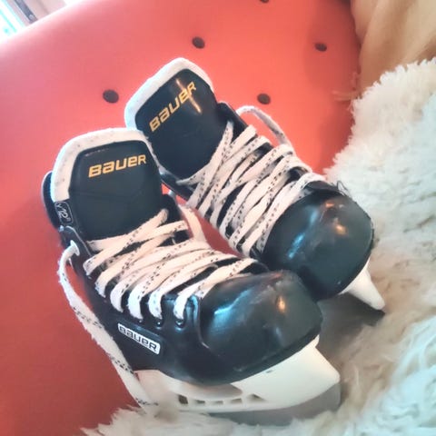Bauer lasten jääkiekkoluistimet, koko 31. Luistimissa musta ja valkoinen väriyhdistelmä. Soveltuvat jääkiekkoiluun lapsille.