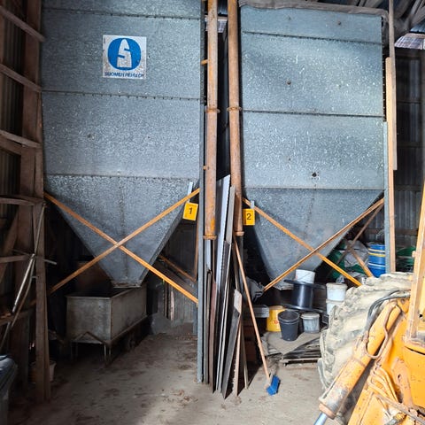 Ollut pellettisiilon pohjana. Suljettava luukku ja irrotettava putki kuljetusruuville.