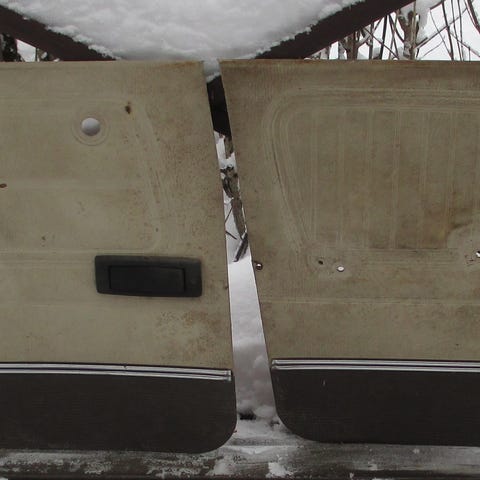 Kaksi sarjaa punaisia Datsun PL510 vm. 69-71 mallien ovipahveja. Toinen sarja putsauksen jälkeen MR-kelpoinen, toinenkin kunnostettavissa. Kumpikin sarja yhteensä 5e.
