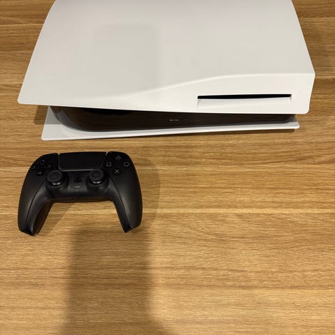 Sony Playstation 5 pelikonsoli. Kotikäyttöön tarkoitettu videopelikonsoli, jossa valkoinen ja musta väritys. Sopii Playstation 5 -pelien pelaamiseen.