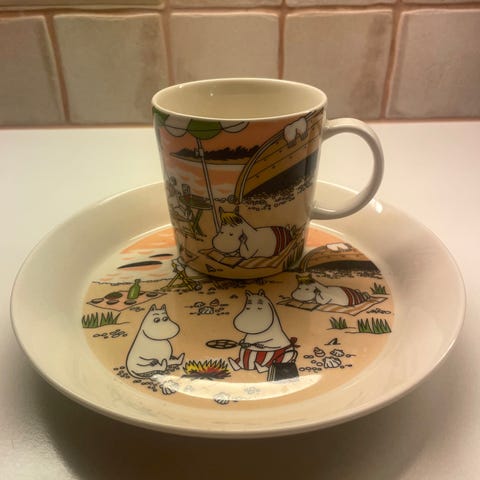 Arabia Muumi kahvikuppi ja lautanen 75 vuotta -sarja
