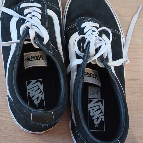 Vans-merkkiset talvilenkkarit/nilkkurit, mustaa mokkanahkaa, koko 42. Nilkan kangasvuoreen tullut sisäpuolelle nukkaa, mutta pohjat ovat ehjät ja oikein siistit sisältä ja ulkoa.