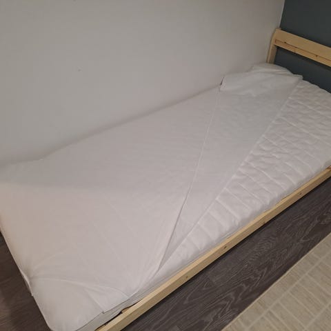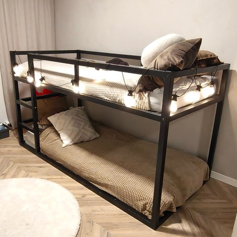Kuvanmukainen sänky, väri musta. Sänkyrunko ja pohjasäleikkö, ei patjaa.