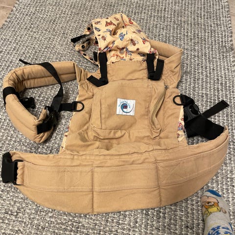 Hyvässä kunnossa oleva ErgoBaby merkkinen kantoreppu. Pienennin ja ohjeet mukaan. En löytänyt moitteita äkkiseltään, mutta käytetty on, joten käytön jälkeä saattaa löytyä.
