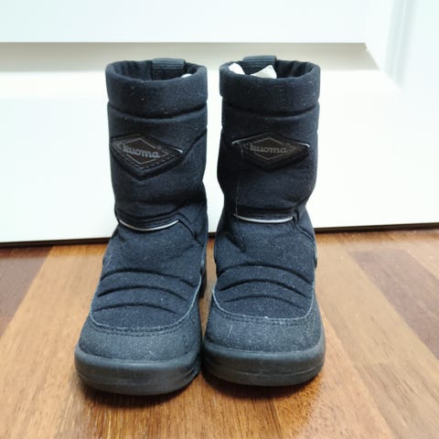 Kuoma lasten talvikengät koko 25, unisex-malli, musta väri. Kengät soveltuvat kylmiin olosuhteisiin ja tarjoavat lämpöä sekä suojaa lapsen jaloille.