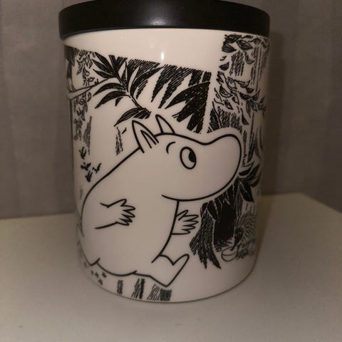 Arabian Muumin Seikkailu-sarjan Tove Slotte 2008 - 2013 keraaminen säilytyspurkki puisella kannella. 1,2 litraa. Siisti ja ehjä, ollut koristeena. Uudenveroinen