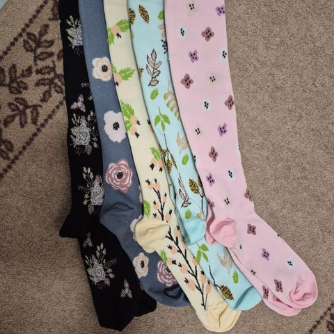 Uudet ja käyttämättömät kompressionilkkasukat, jossa avoin varvasosa.