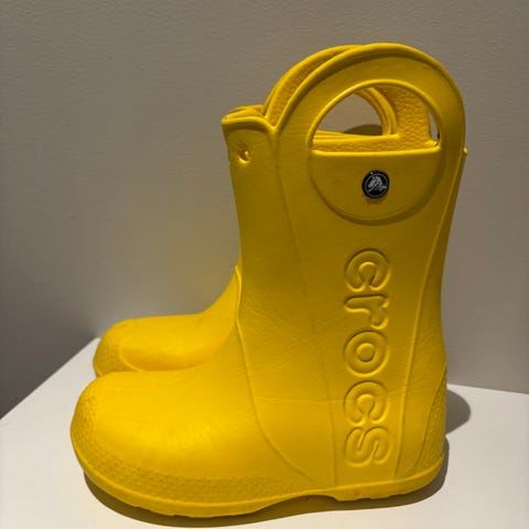 Crocs lasten kumisaappaat, koko 35. Saappaat ovat keltaiset ja unisex-mallia, sopivat sekä tytöille että pojille. Ei ole pesty käytön jälkeen, seuraavalle ehjät ja hyväkuntoiset saappaat.